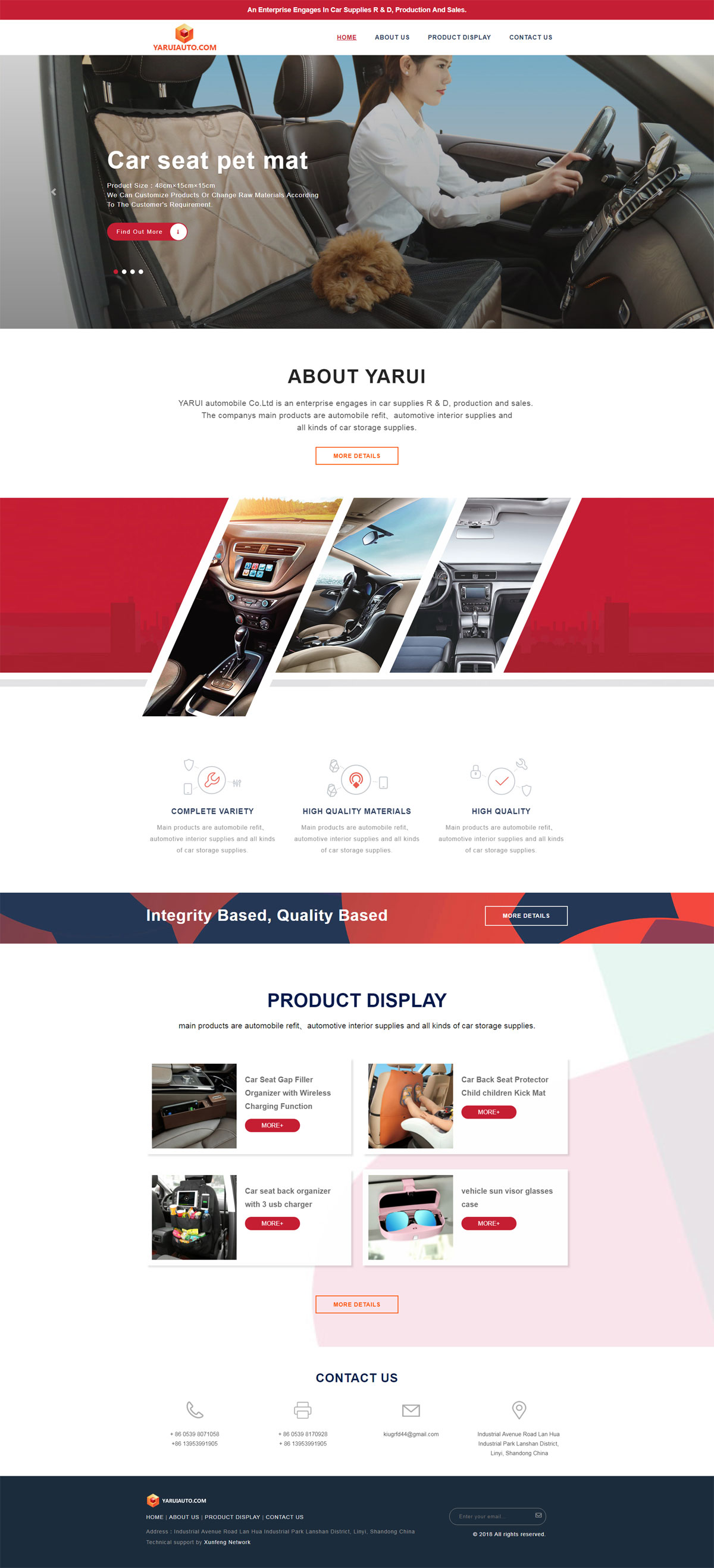YARUI automobile Co.Ltd is an enterprise engages in car supplies R & D, production and sales. The company has professional production equipment and skilled workers. It currently has more than 200 employees, and the production area is over 6,000 square meters. It has an independent product development and design team with a number of intellectual property rights of many best-selling automotive supplies.